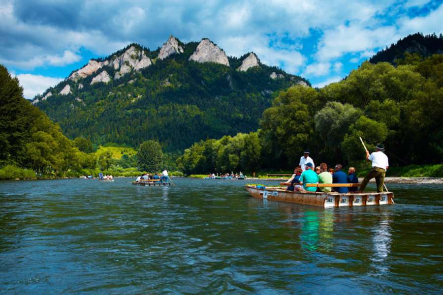Zdziarska Przełęcz 1077m n.p.m. – j – foto postój i bajkowa panorama Tatr, Bachledowa Dolina – wjazd kolejką gondolową na szczyt Magury Spiskiej (ok. 7 minut), spacer po Ścieżce w Koronach Drzew ,Szczyrbskie Jezioro 1346 m n.p.m. - najwyżej położona miejscowość turystyczna w Tatrach Słowackich nad tatrzańskim jeziorem (1h), przejazd kolejką panoramiczną wąskotorową do Starego Smokowca - najstarsze uzdrowisko i kurort Tatr Słowackich,degustacja wody mineralnej, czas wolny ok. 2h. Dla chętnych w czasie wolnym wjazd kolejką linowo-terenową (góra-dół) na Hrebienok 1285m n.p.m. i spacer do Wodospadów Zimnej Wody.Spływ Przełomem Dunajca - Słowacja
